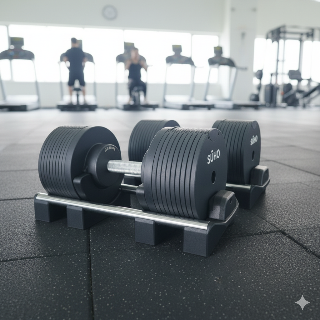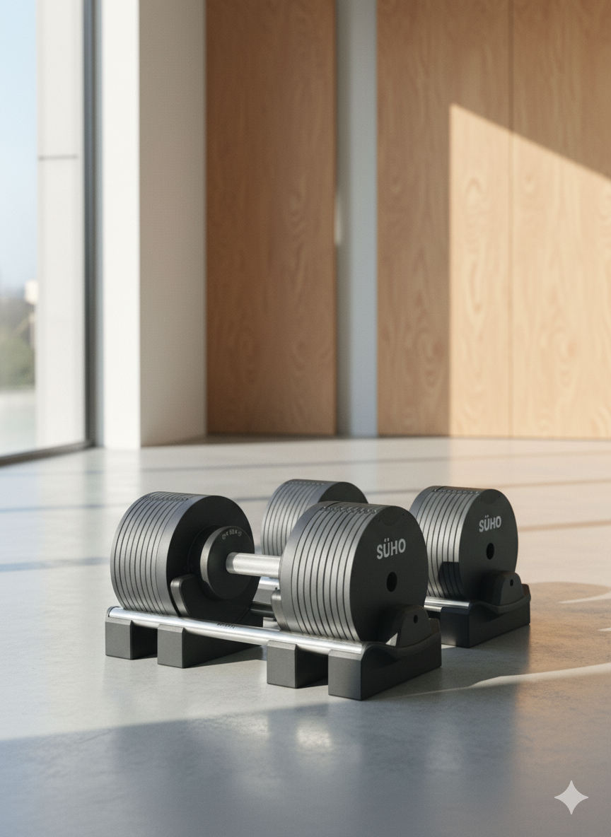 Vervangt een complete dumbbell rek, zonder concessies aan design of balans.